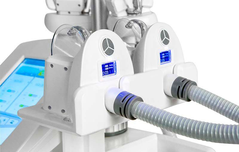 Pour plus de sécurité, les capteurs contenus à l’intérieur des pièces à main permettent de contrôler la température durant toute la séance et d’éviter les risque d'engelures et de brûlures liées au froid.