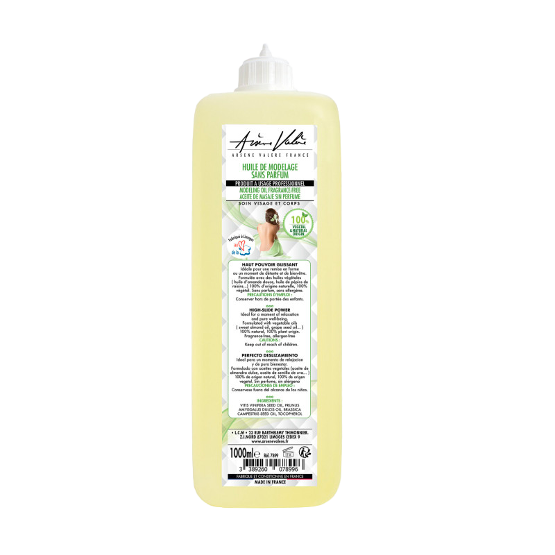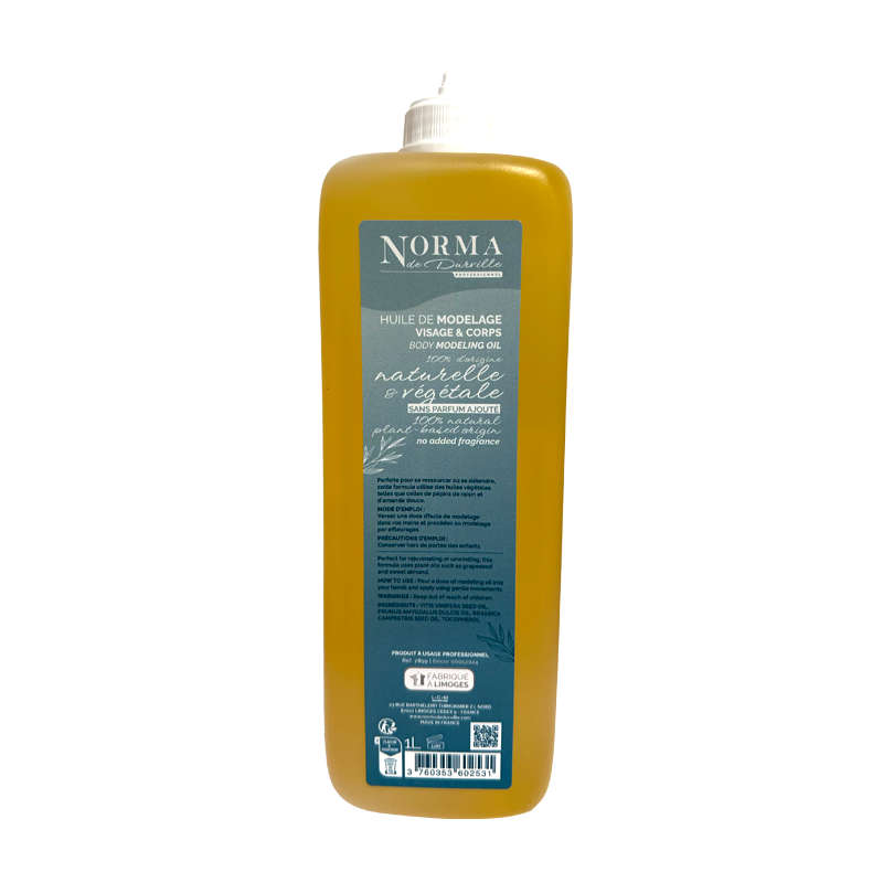 HUILE MODELAGE NEUTRE 1L 100% VEGETAL ET 100% D'ORIGINE NATURELLE, SANS PARFUM. Made in France