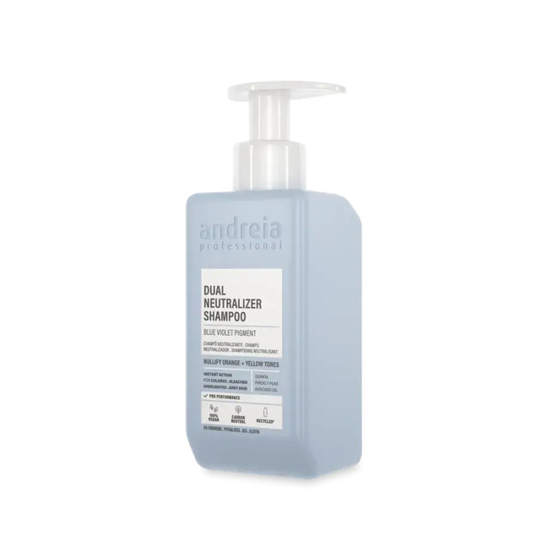 Shampooing neutralisant vegan. Le pigment violet bleuâtre annule les tons orangés et jaunâtres. Pour les cheveux colorés, décolorés, méchés et gris. Action instantanée. Avec des protéines de quinoa, de l'extrait de figue de barbarie et de l'huile d'avocat. Performance professionnelle. 0% Parabènes, Phtalates, DEA, Gluten.