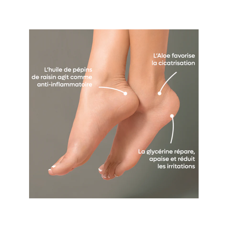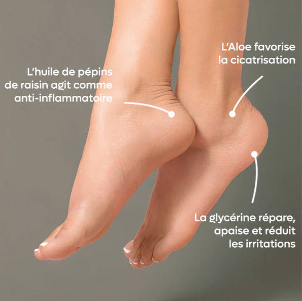Idéal au quotidien sur les zones abimées et crevassées des pieds. Cure idéale pour hydrater, nourrir et apaiser en profondeur afin de retrouver des pieds lisses. Protège les pieds été comme hiver.