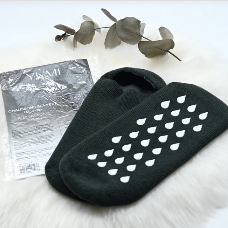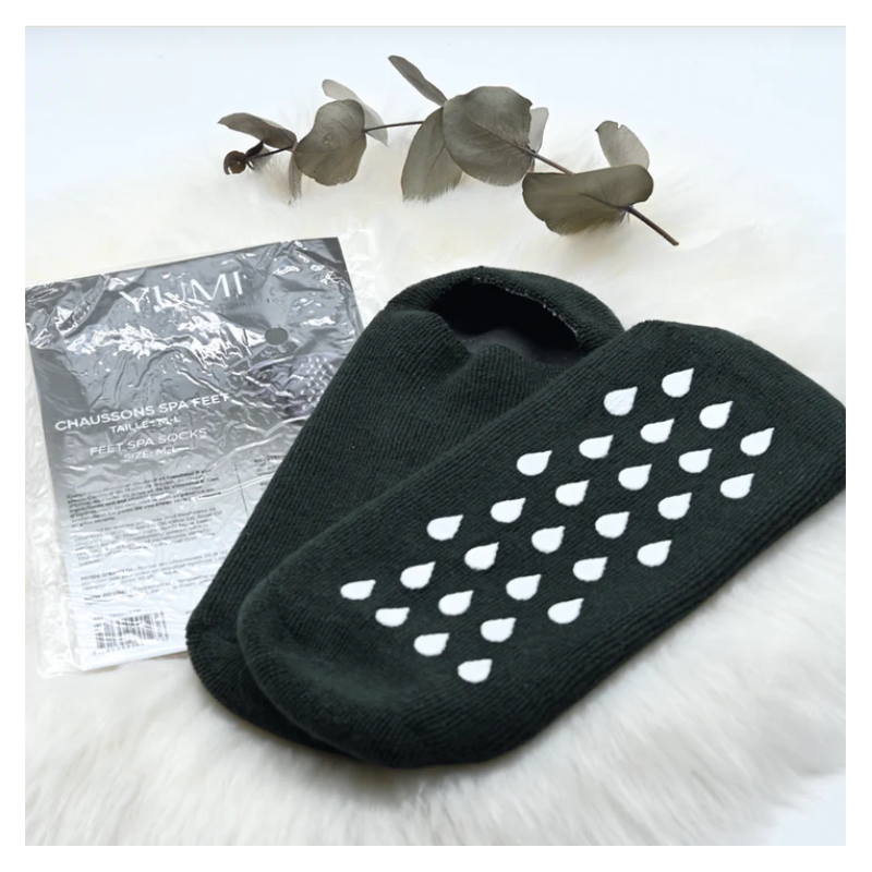 Conçus pour retrouver la douceur et la fraîcheur de vos pieds. Les chaussons SPA Yumi Feet sont enrichis en huiles hydratantes. Confortables à porter, odeur agréable. Laisser les chaussons aux pieds durant 20-30 minutes. Pour prolonger les effets, il est recommandé d’appliquer ensuite la crème pieds après soin.
