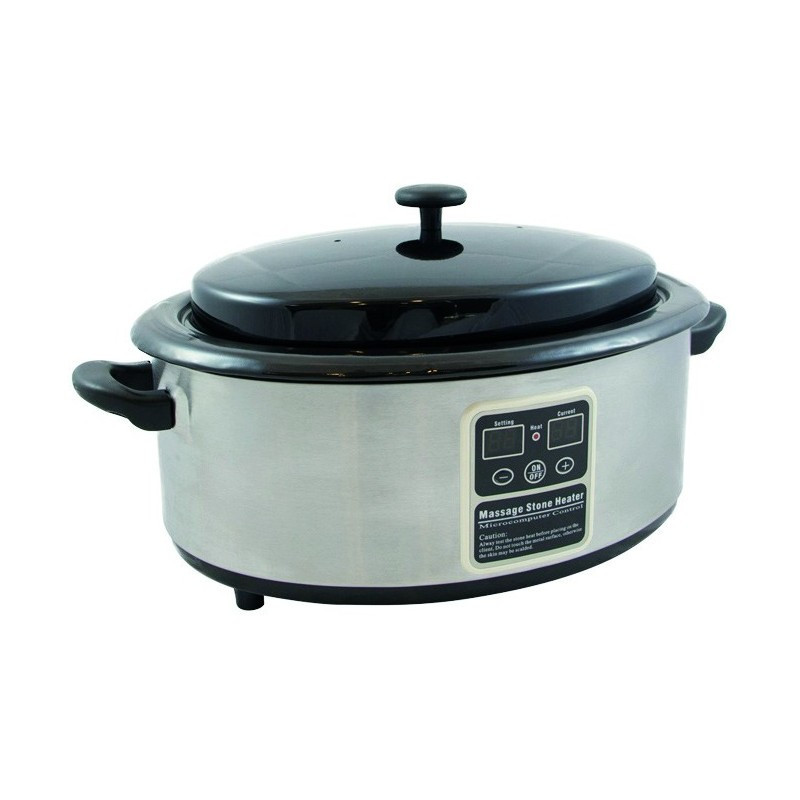 Appareil chauffe-pierres, avec écran digital. Il maintient une température constante entre 40ºC et 50ºC. Cuillère comprise.